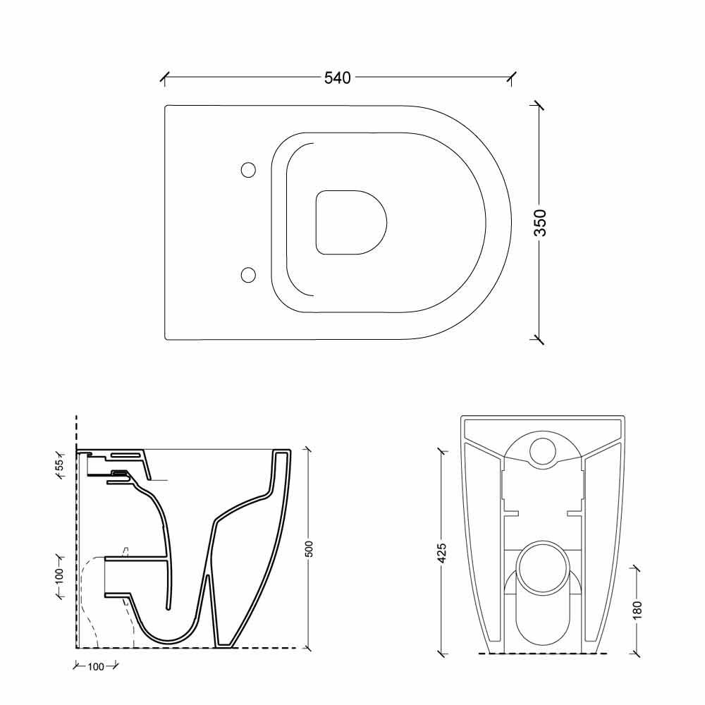 Hvid keramisk toiletvase, moderne design Shine Square H50 Rimless