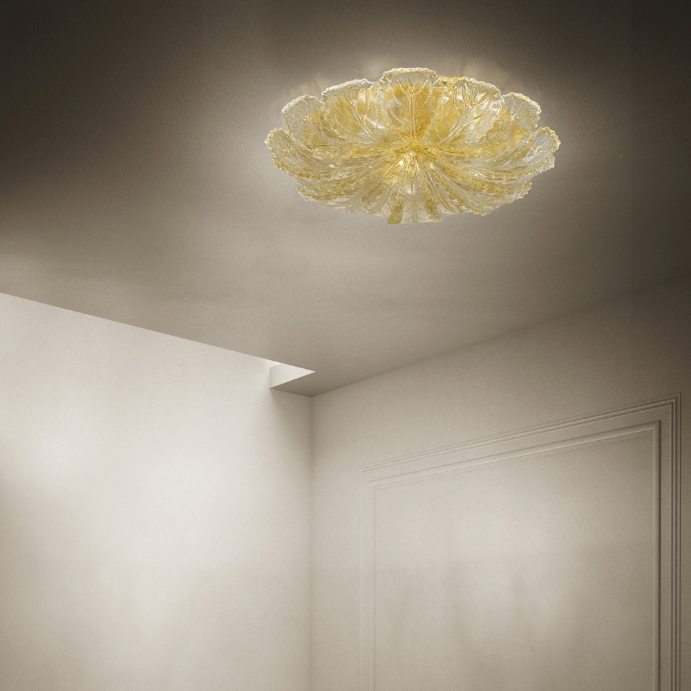 Håndlavet loftslampe i Venedig glas og metal Fremstillet i Italien.