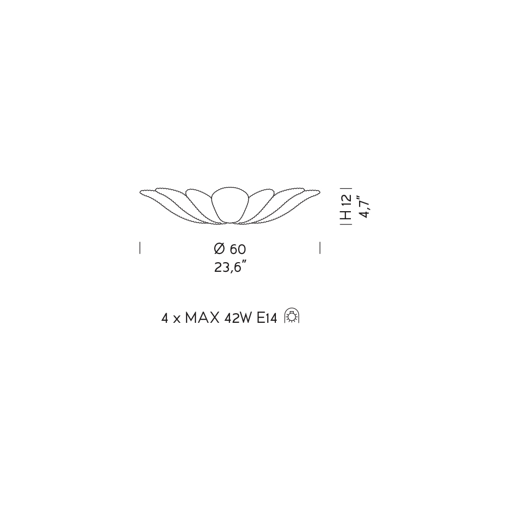 Tilgængelige størrelser:- diameter 60 x H 12 cm (4 lys);