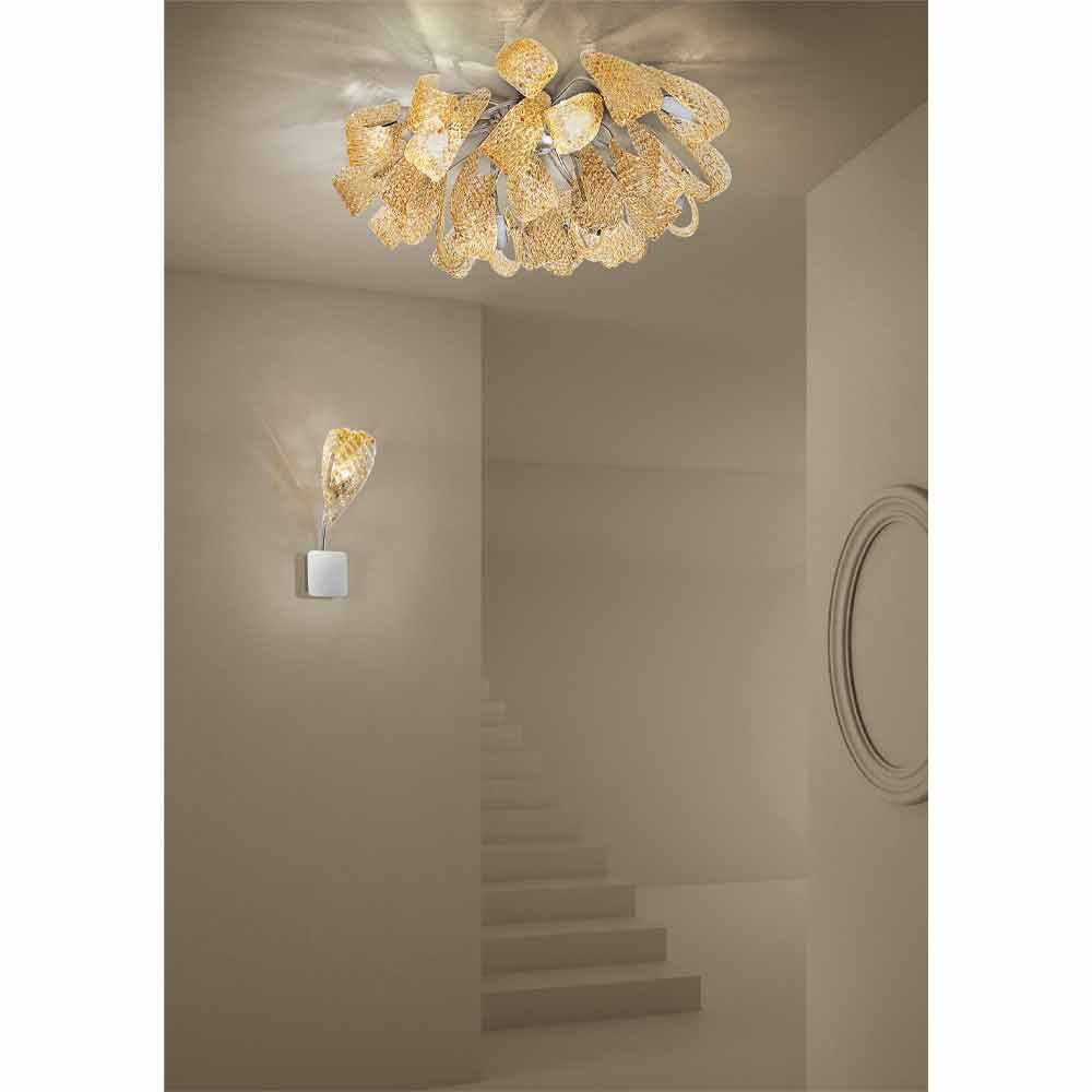 Loftlampe i Venedigs glas og forkromet metal, håndlavet i Italien.