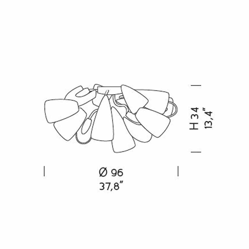NB : Loftlampen fås i en bred vifte af forskellige farver, og når den er håndlavet, kan den også tilpasses i form og størrelse.