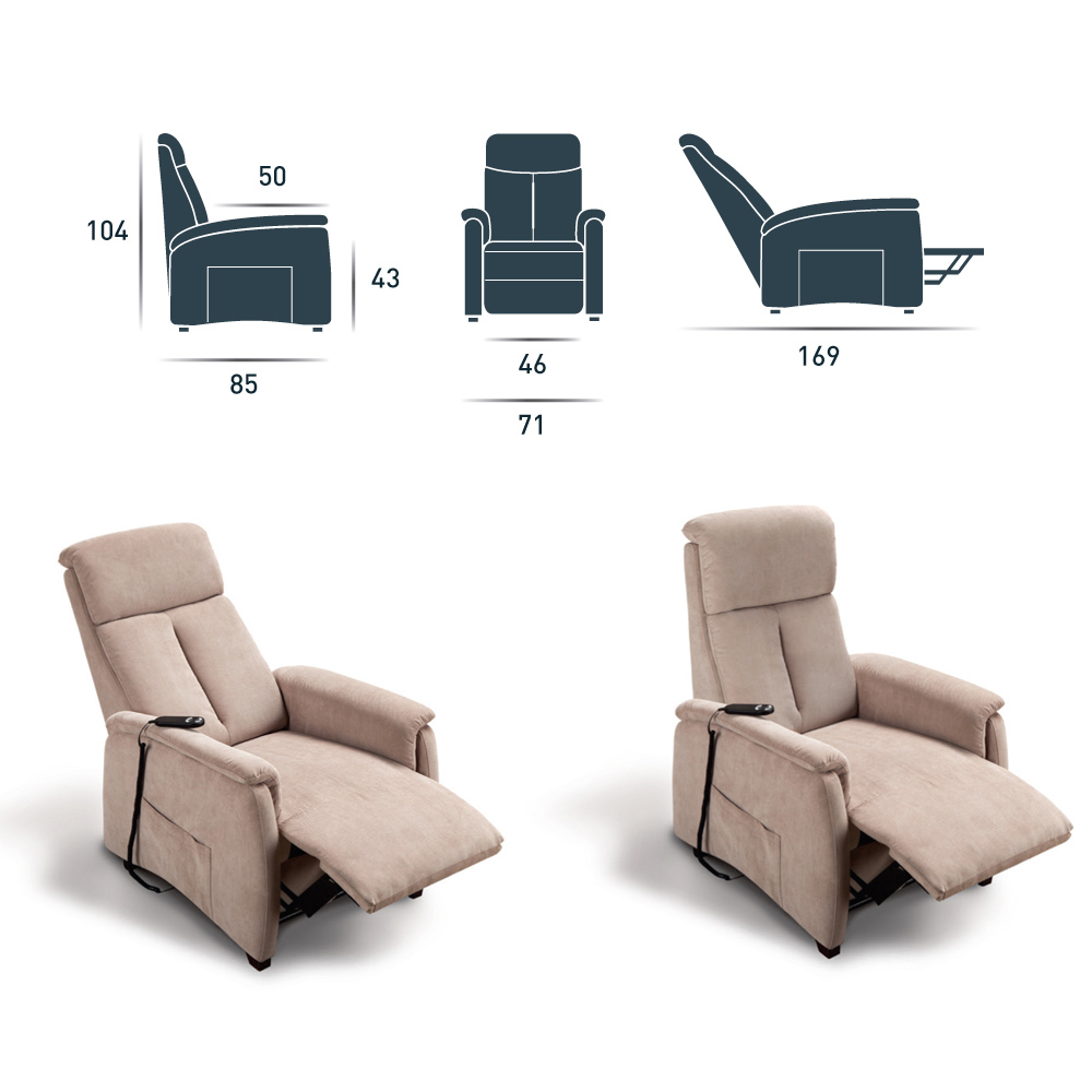 Via Venezia- liftstolen har en 2-motors mekanisme med en motoriseret afslapningsbevægelse ved hjælp af en fjernbetjening.