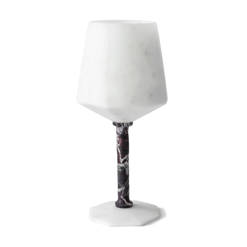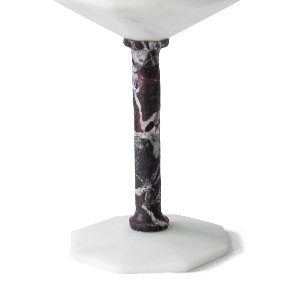 Vinglas i satin hvid Carrara marmor og rød Levanto, design lavet i Italien.