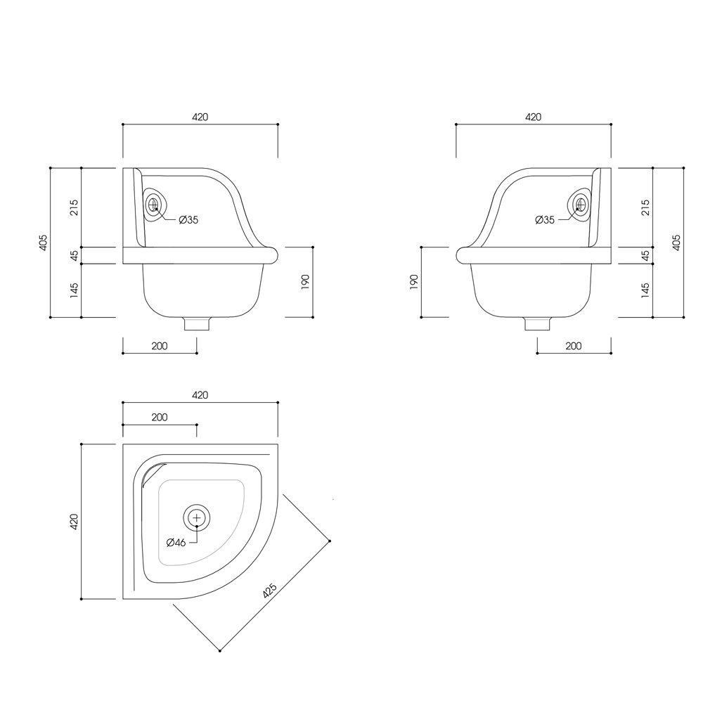 strejf af kreativitet. Dens form er designet til at installere produktet i hjørnerne af badeværelsesområdet, hvilket skaber en betydelig