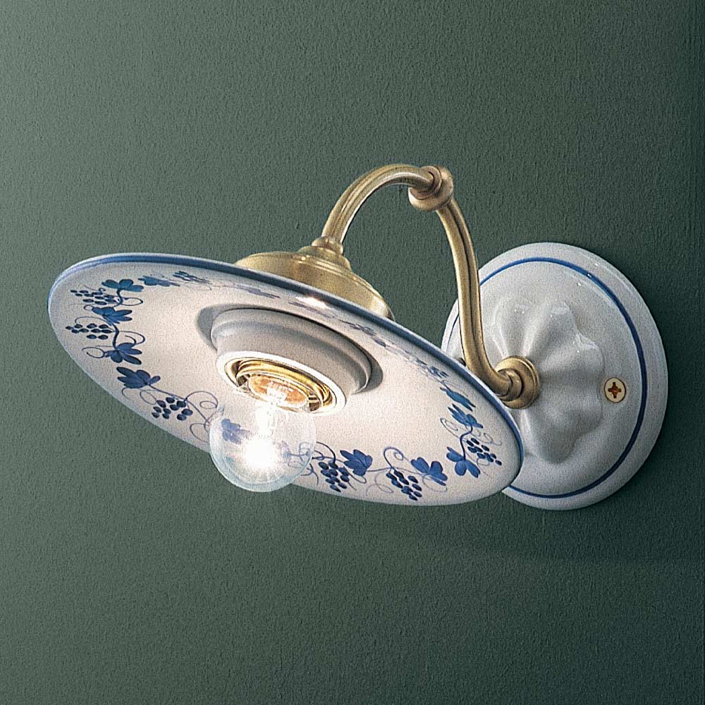 Vintage håndmalet væglampe i jern og keramik lavet i Italien af Ferroluce.