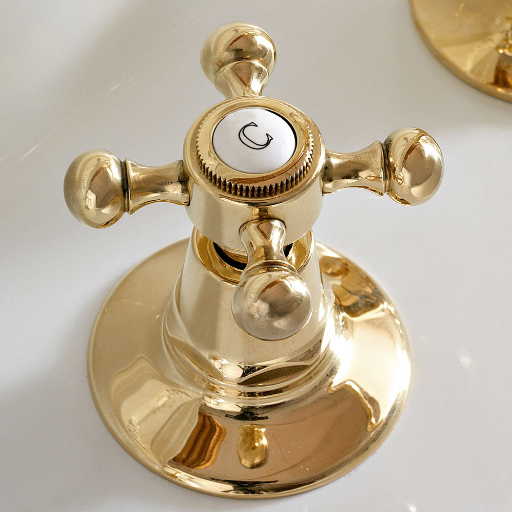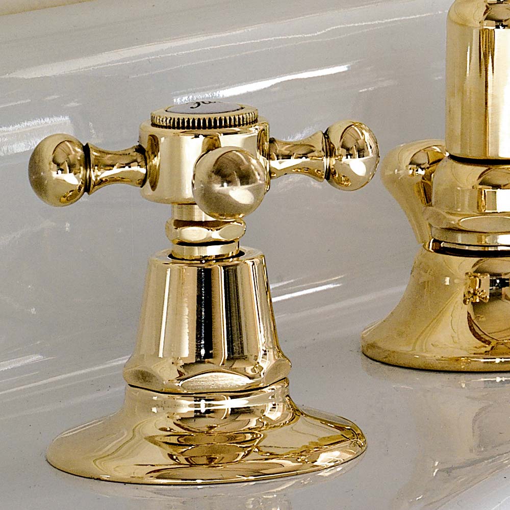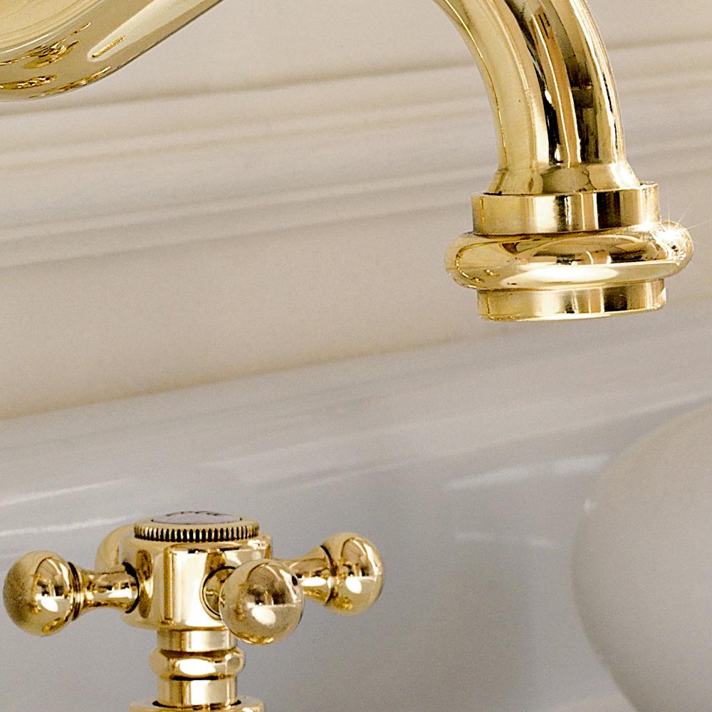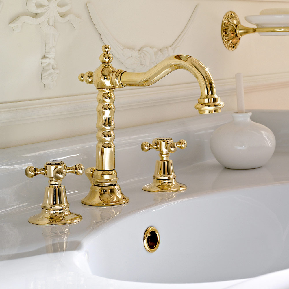 3-hullers håndvaskarmatur i designstil i messing Ursula, fremstillet i Italien.