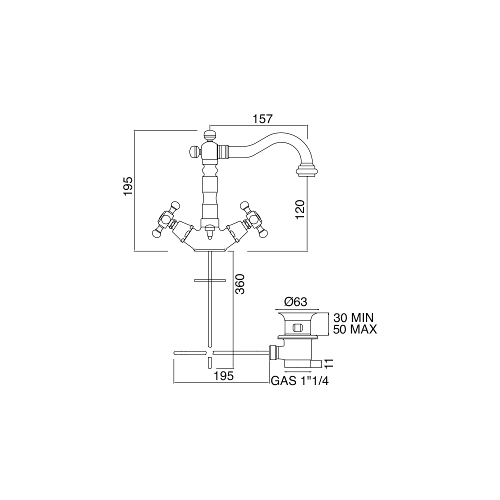 Enkelthuls håndvaskarmatur i vintage-design i messing Ursula, fremstillet i Italien.