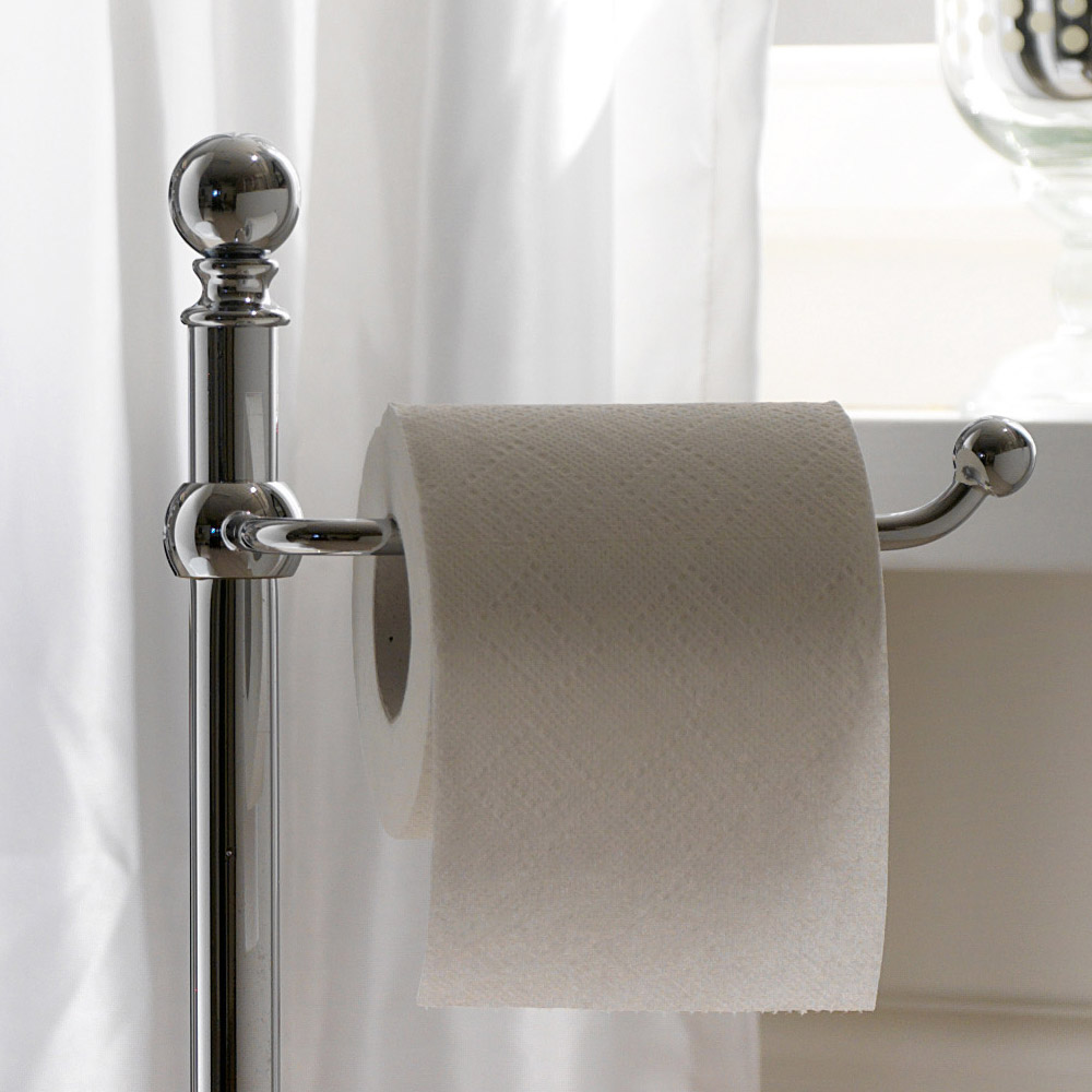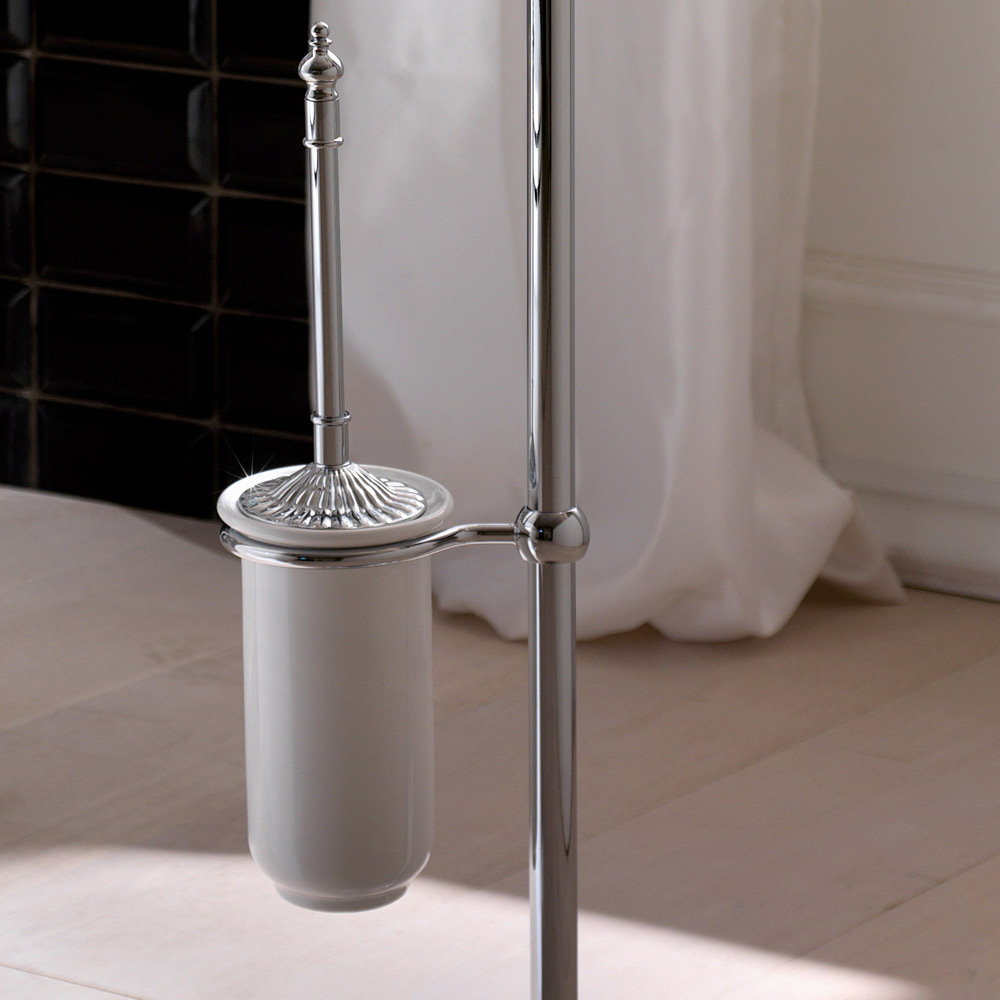 Stående håndklædeophæng med toiletbørsteholder og vintage papirholder lavet i Italien.