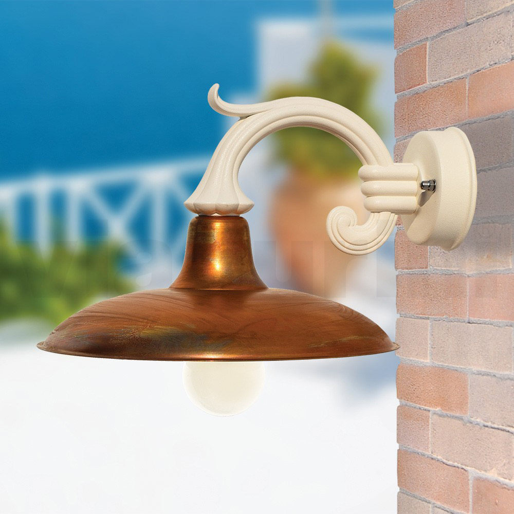 Væglampe med præget hvid trykstøbt aluminium struktur og naturlig messing diffuser (d. 260mm) lavet gennem 100% Made in Italy produktion . Komplet med rustfri stålskruer og silikonepakning for større beskyttelse. Forfining og effektivitet er de vigtigste kendetegn ved dette møbel med en eklektisk personlighed, ideel til at møblere og gøre ethvert udendørsrum elegant og præcist. Ideel til miljøer som haver, gårdhaver, alléer og gangbroer, men også kontraktrum som barer og restauranter.