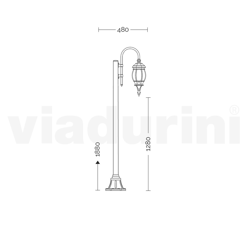 Havelampe lavet gennem 100% Made in Italy produktion i trykstøbt aluminium i antracitgrå finish med transparent polycarbonat diffuser. Komplet med rustfri stålskruer. Elegance og vintage stil gør dette møbel til en perfekt løsning til at indrette dine udendørs rum på en præcis og eksklusiv måde takket være de særlige detaljer, der understreger dets unikke karakter. Ideel til udendørs miljøer såsom haver, alléer, gangbroer eller udendørs kontraktrum såsom barer og restauranter.