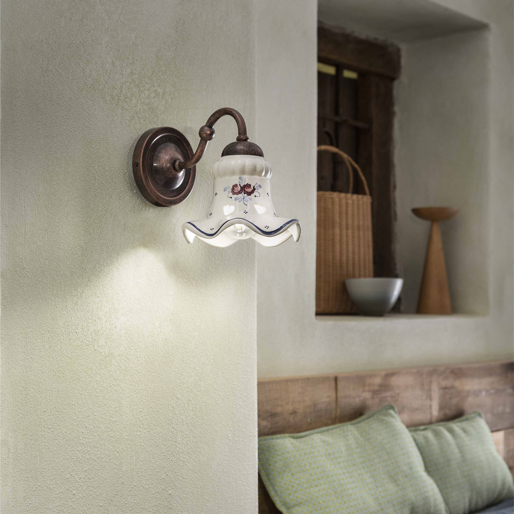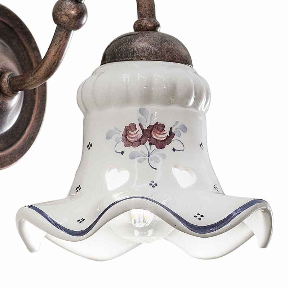 Hånddekoreret væglampe i jern og keramik, lavet i Italien af Ferroluce.