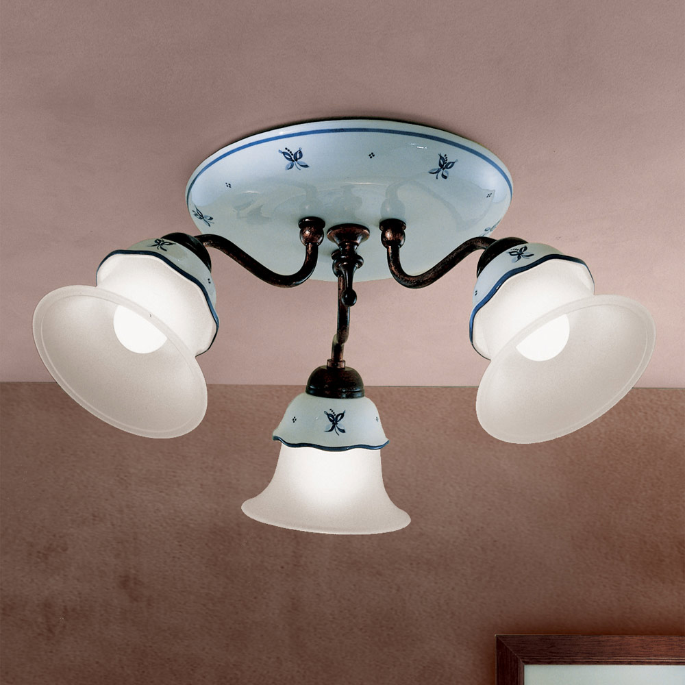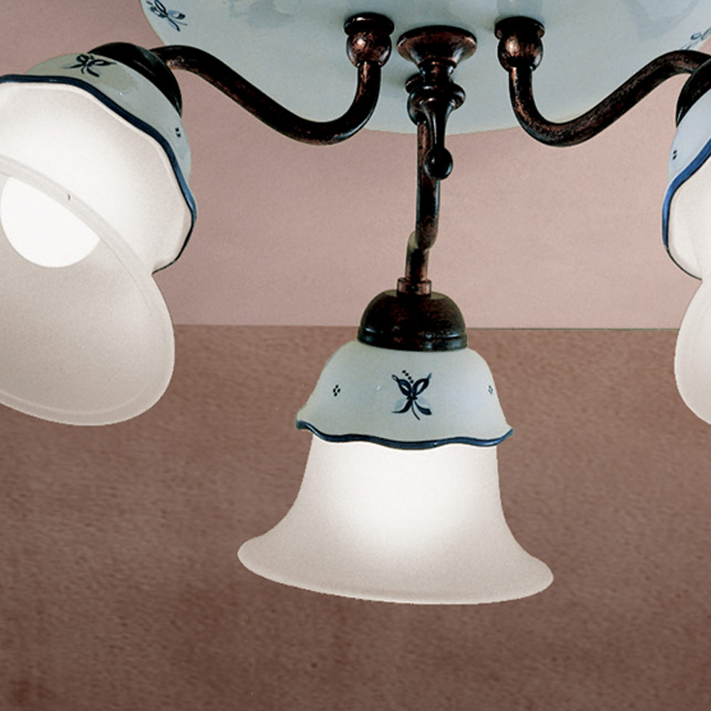 Loftslampe i jern, hånddekoreret keramik og syreætset glas fremstillet i Italien af Ferroluce.