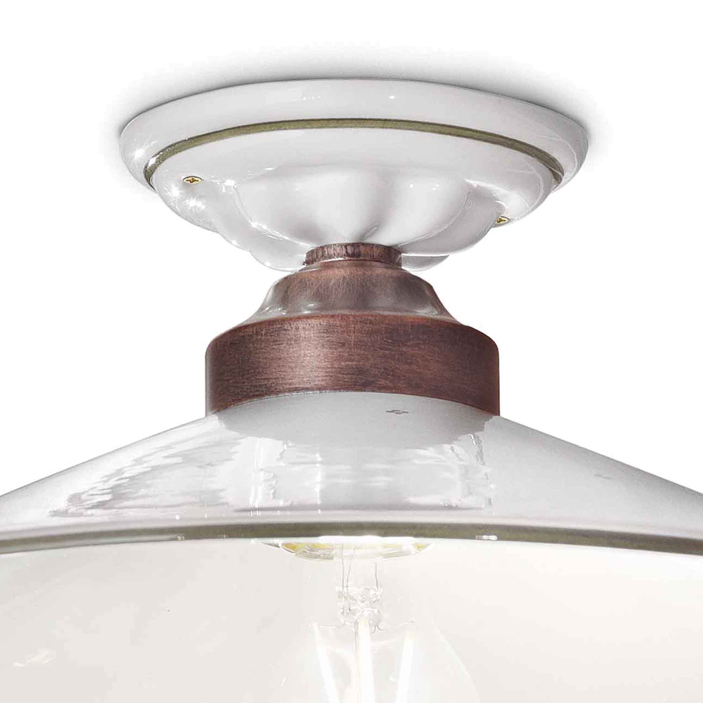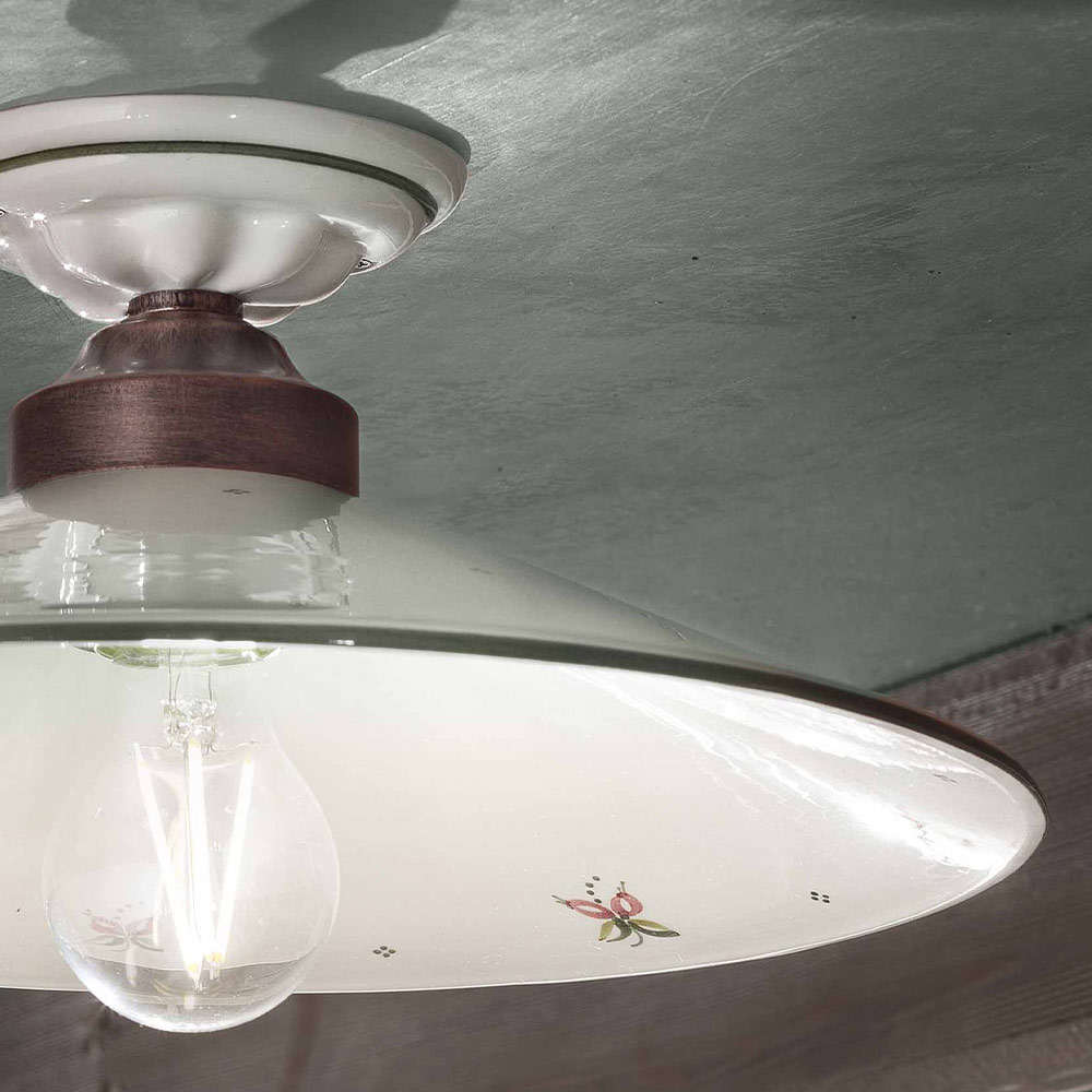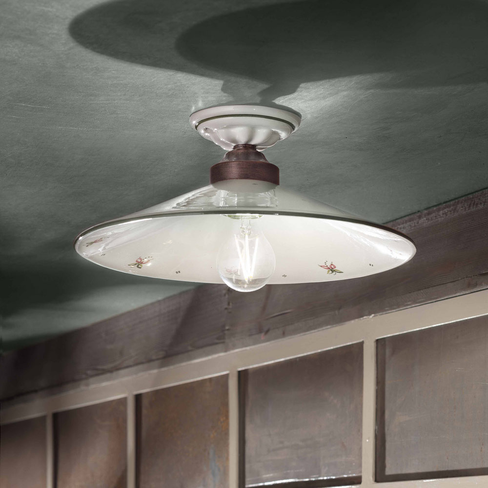 Vintage loftslampe i jern og håndmalet keramik, 3 størrelser lavet i Italien af Ferroluce.