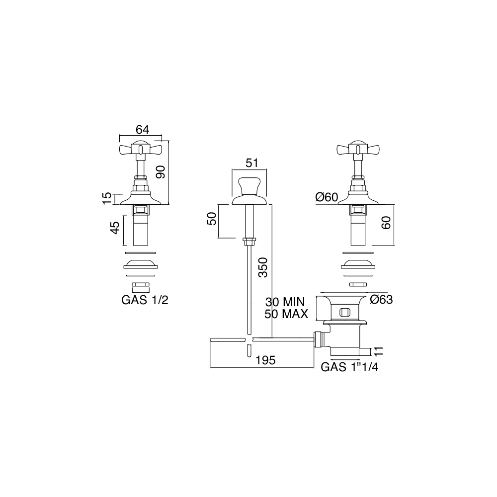 bidetarmatur 3 huller med afløb og indvendig tud.