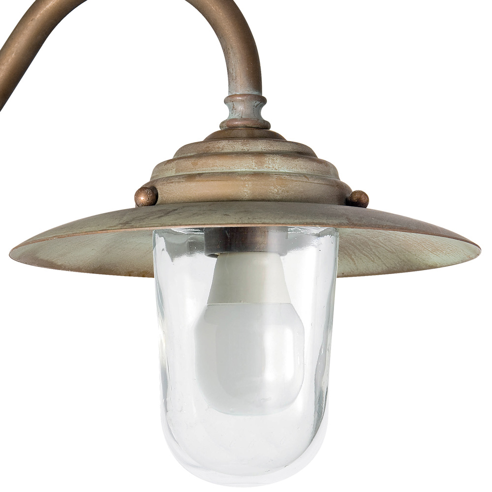 Denne udendørs væglampe kombinerer klassisk design med robust håndværk og skaber en lampe med autentisk charme. Messingstrukturen , der er fremstillet med fine finish, huser en transparent glasdiffusor , der beskytter lyskilden og spreder et klart, funktionelt lys .