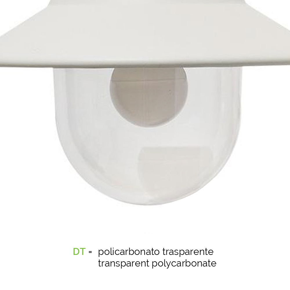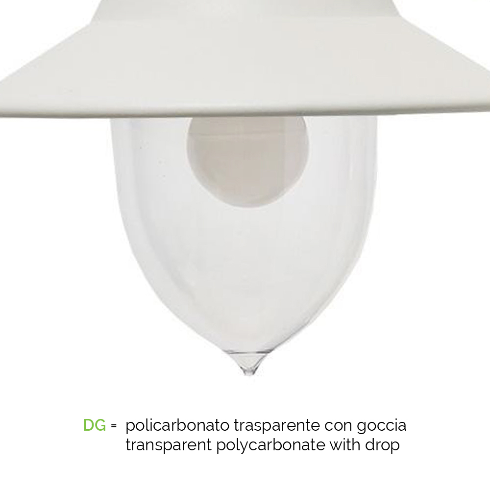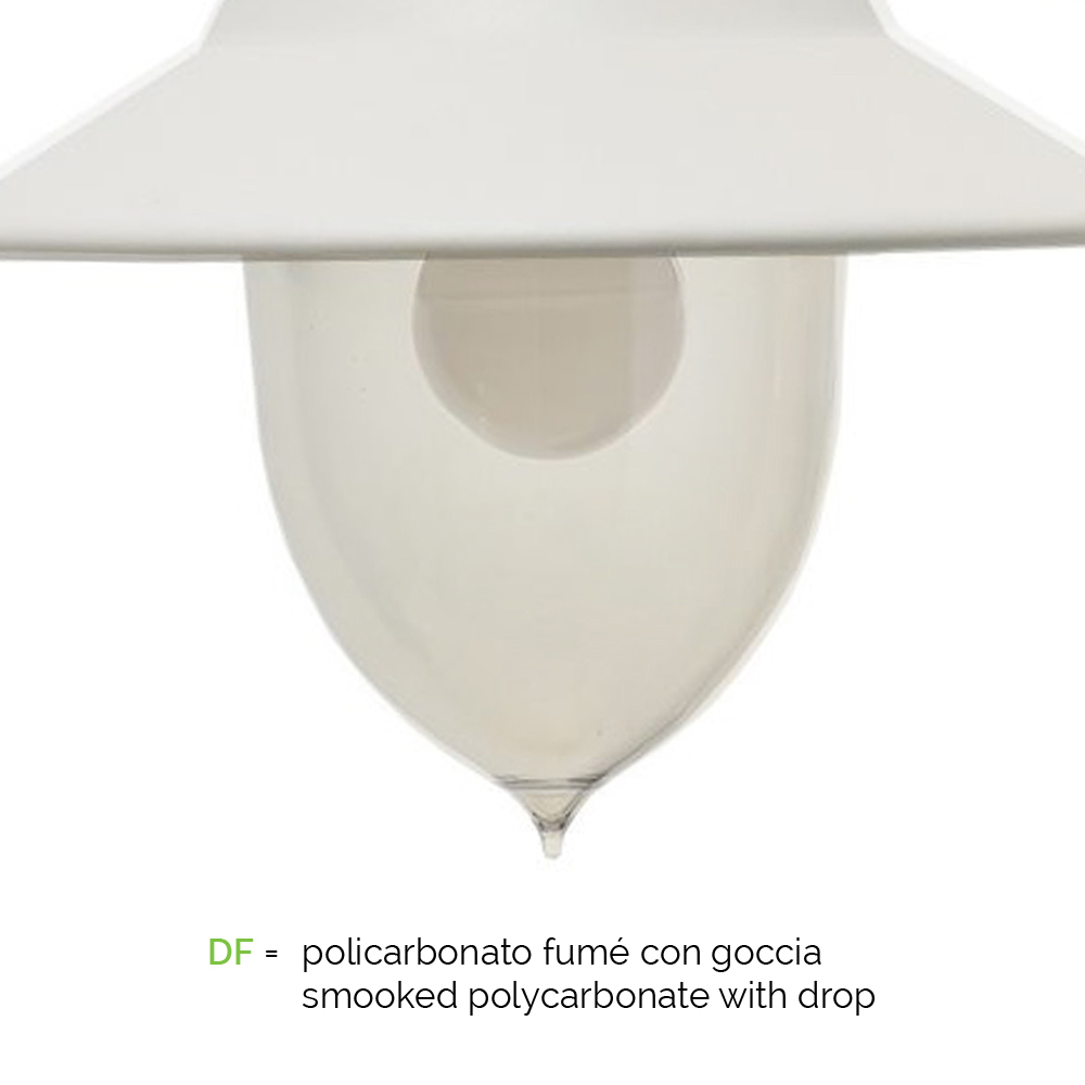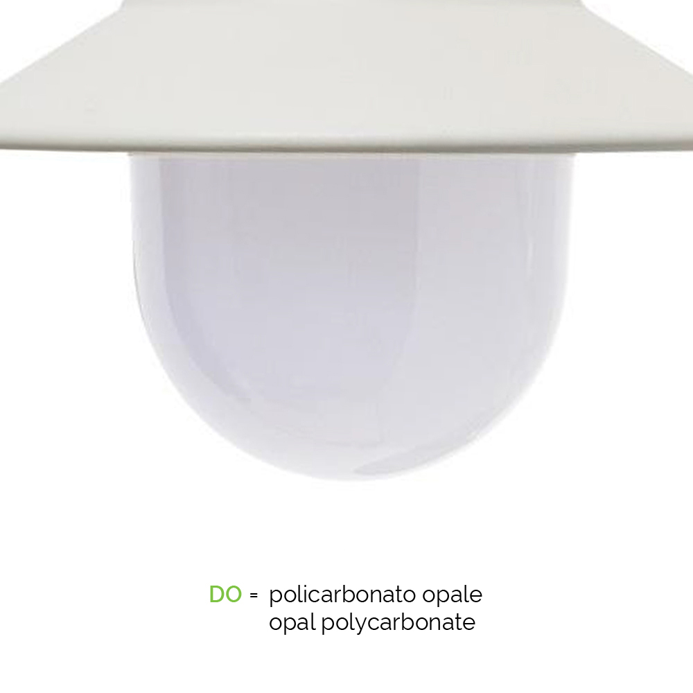 polycarbonat diffusor komplet med rustfri stålskruer. Et produkt med en stærk elegant personlighed præget af en vintage stil, som øger dens unikke karakter og understreger dens raffinerede æstetik. Ideel til indretning af bolig- eller kontraktudendørsmiljøer såsom haver, verandaer, alléer og gangbroer. De foreslåede farvenuancer er strengt