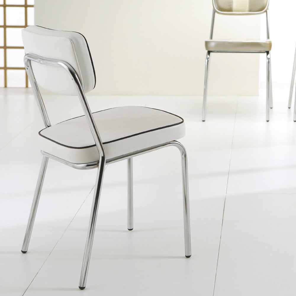 Vintage design stol med graffiti kunstlæder betræk og forkromet struktur.
