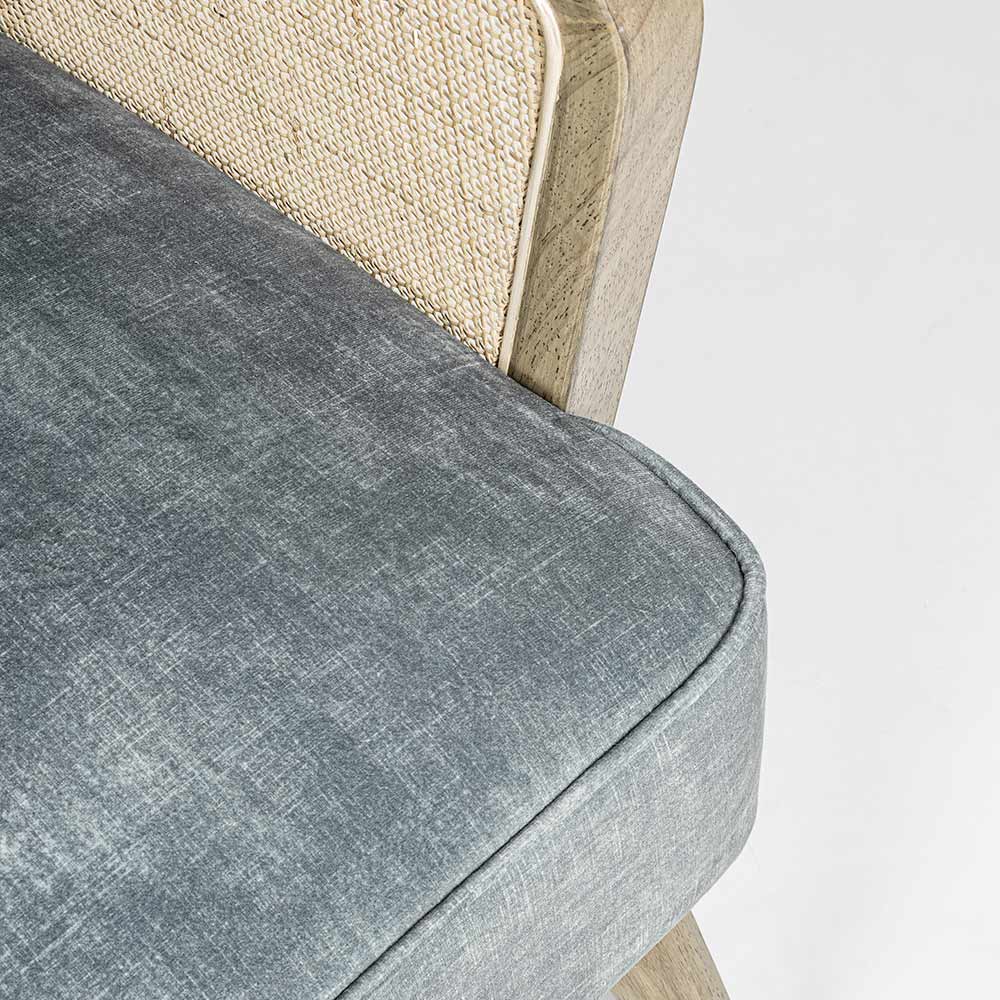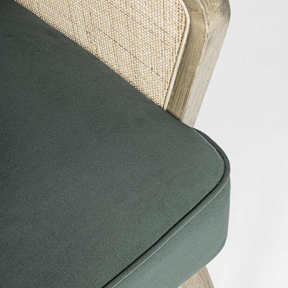 Vintage trælænestol med rattan og polyester armlæn - Ludovica