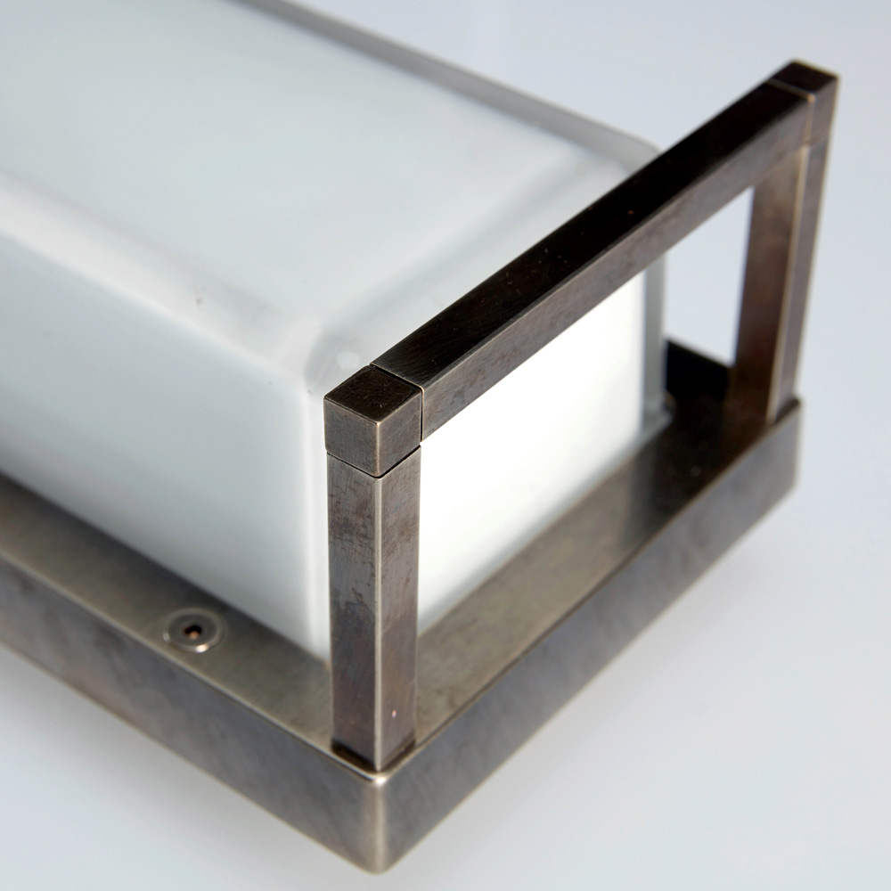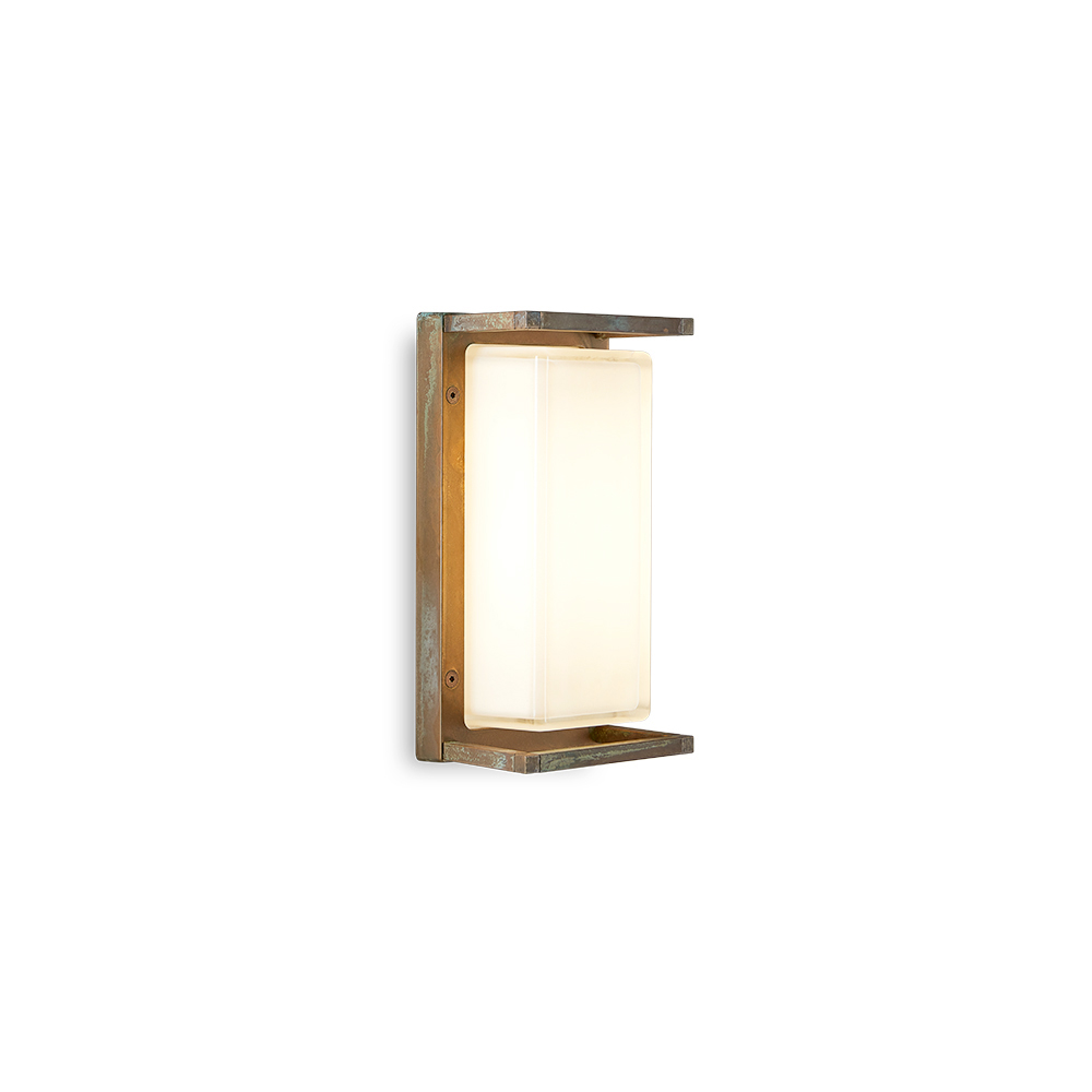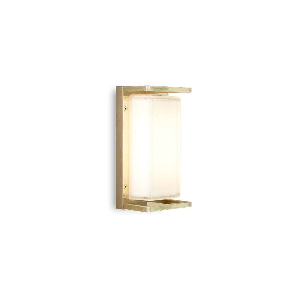 Denne håndlavede væglampe er enkel og elegant og er en raffineret belysningsløsning, designet til at forbedre moderne vægge og nutidige rum. Den støbte messingstruktur kombineret med en rektangulær opalglasdiffusor skaber et blødt, jævnt lys, der er ideelt til indbydende og funktionel belysning.