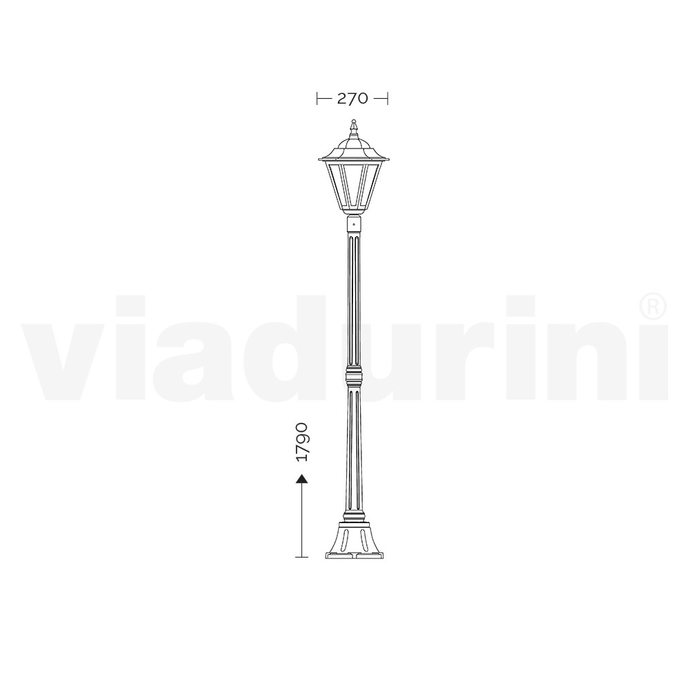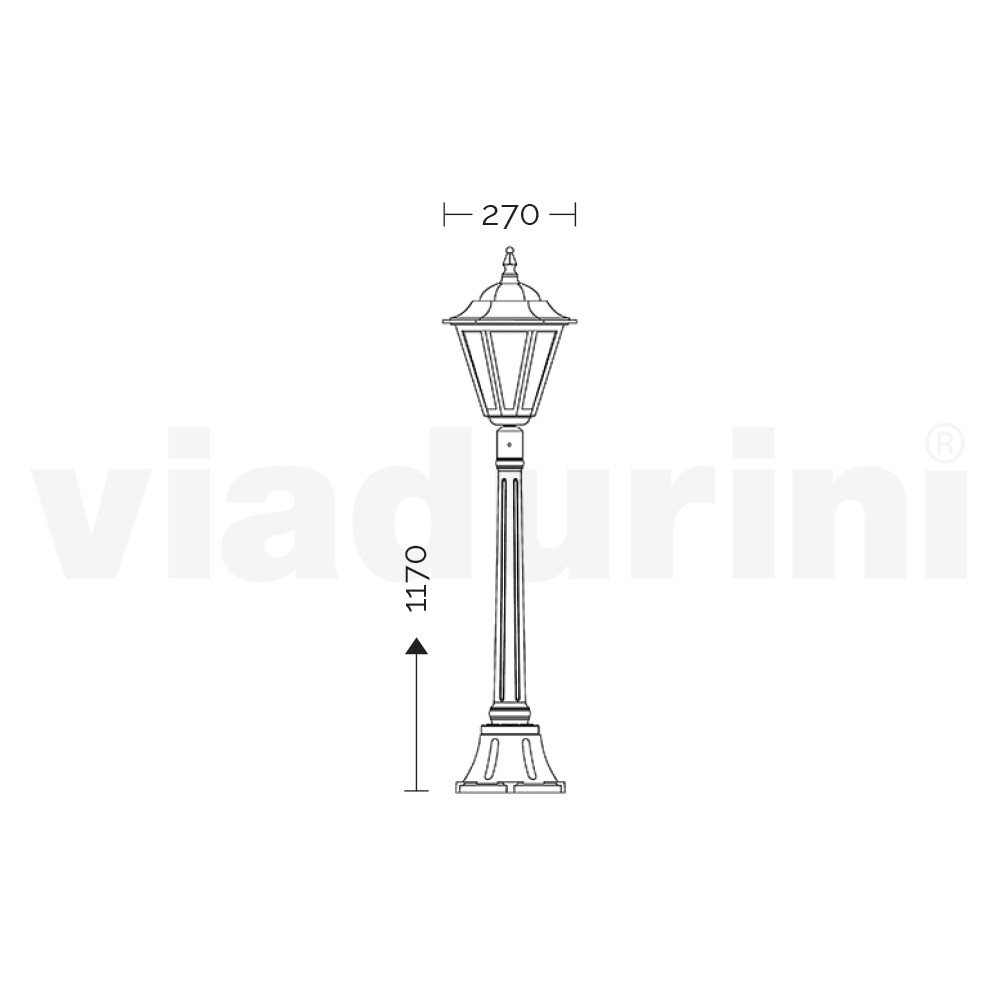 Vintage stil lygtepæl i aluminium med glas diffuser Made in Italy.