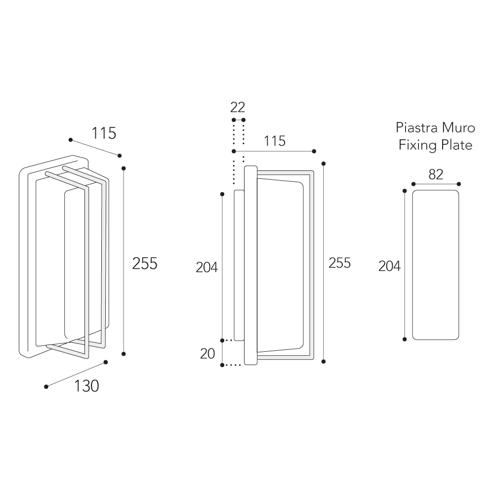 • Vægplade: 20,4 × 8,2 cm