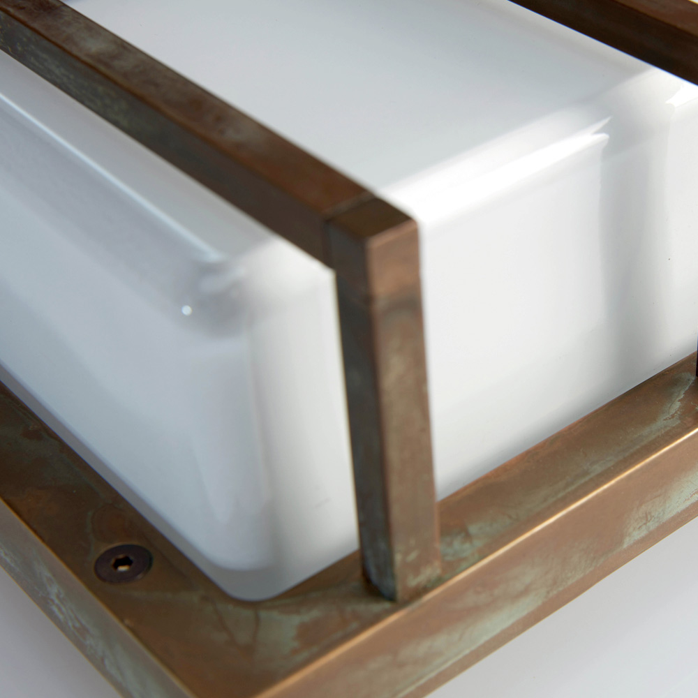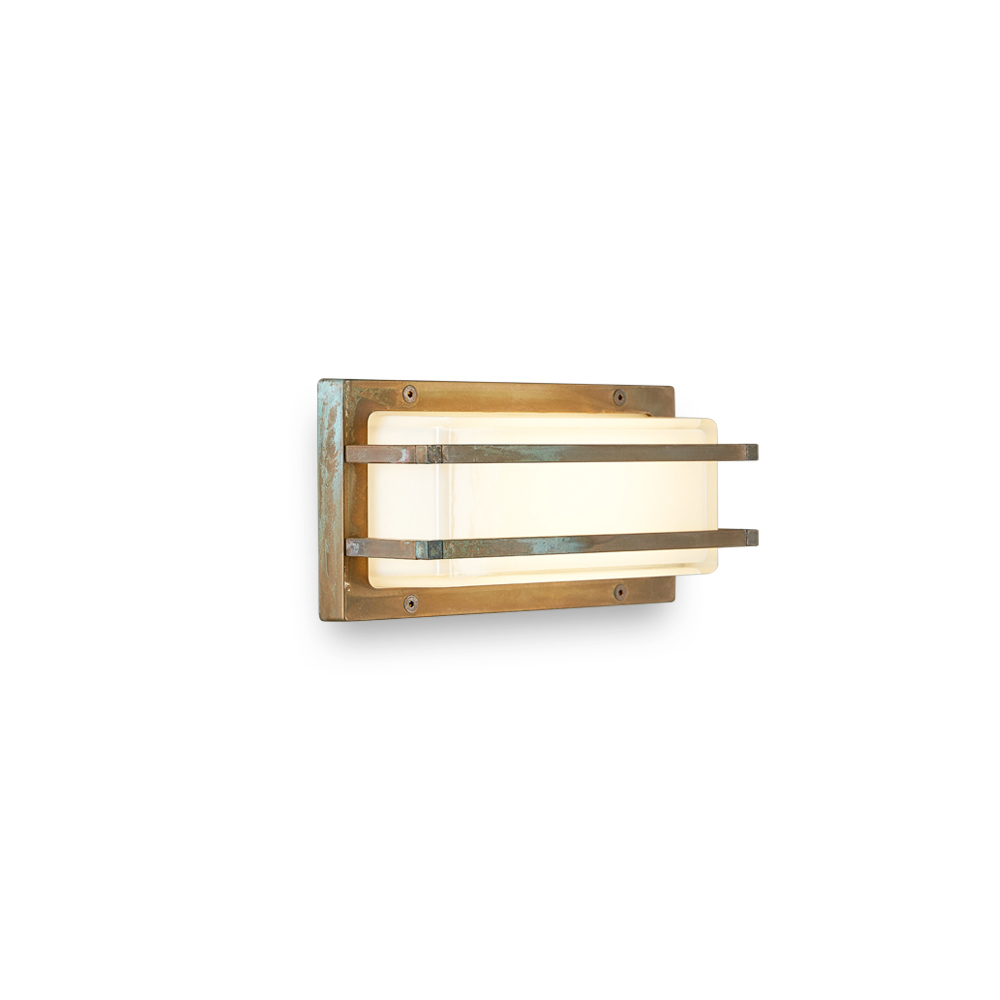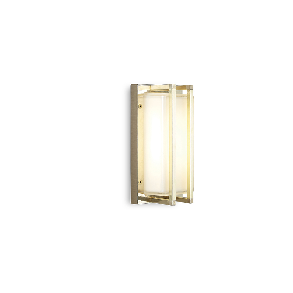 Denne håndlavede væglampe er enkel og elegant og er en raffineret belysningsløsning, designet til at forbedre moderne vægge og nutidige rum. Den støbte messingstruktur kombineret med en rektangulær opalglasdiffusor skaber et blødt, jævnt lys, der er ideelt til indbydende og funktionel belysning.