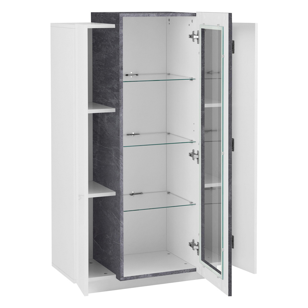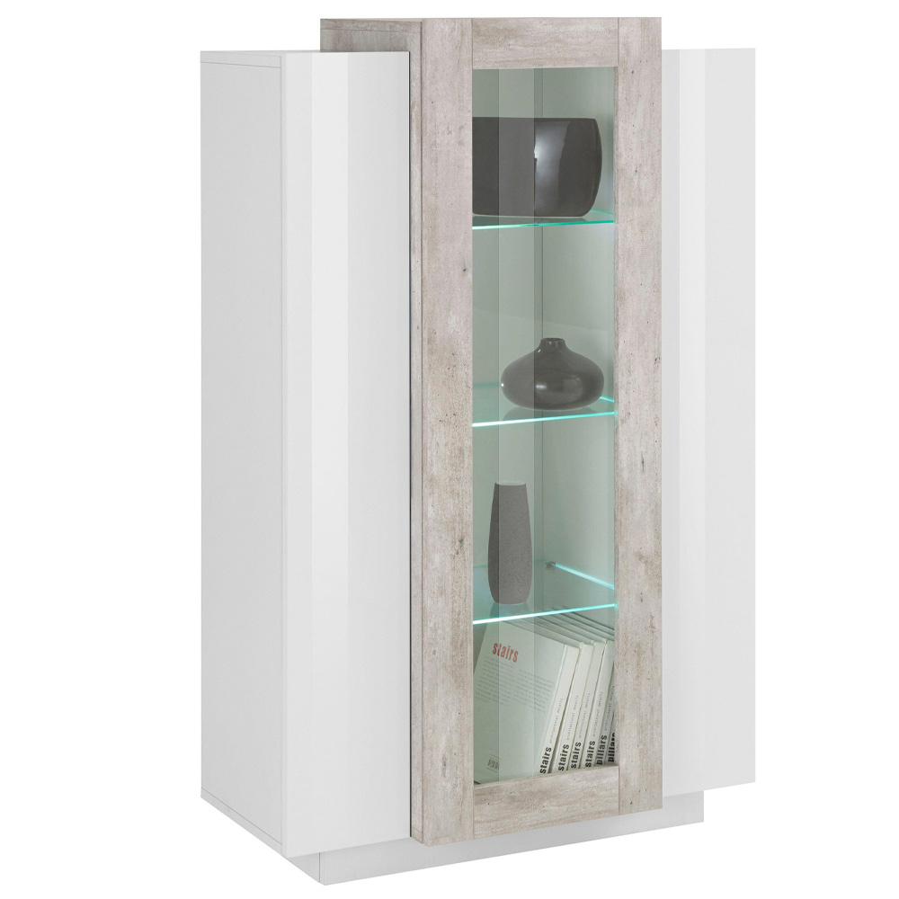 Vitrine med 3 låger i blankt hvidt træ og melamin 3 finish med eller uden led, fremstillet i Italien.