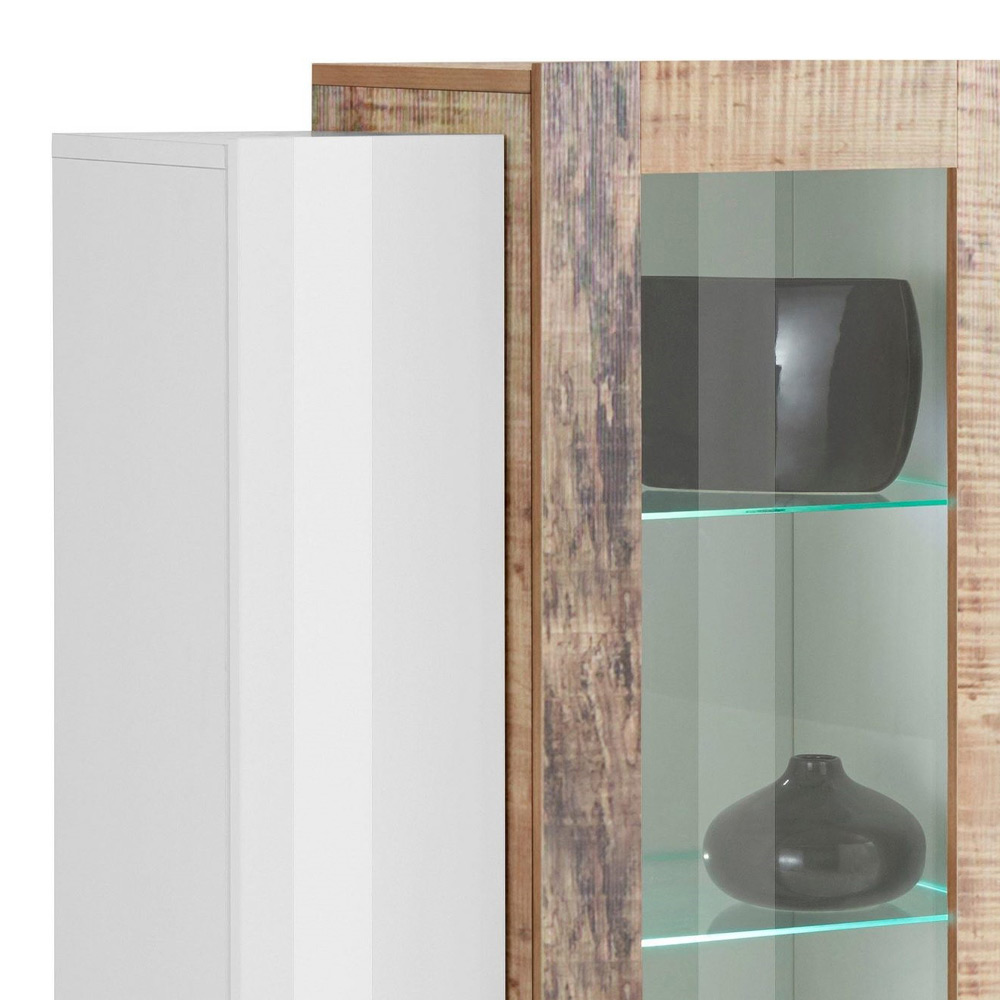 Tekniske egenskaber:- Vitrine med 3 låger (2 i træ med 2 indvendige hylder hver i træ på L 18,4 x D 29,5 x H 111,8 cm og 1 i glas med 3 indvendige glashylder på L 36,8 x D 29, 5 x H 11,8 cm)