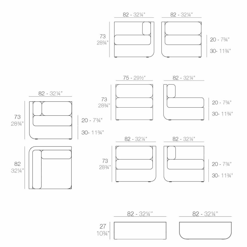 - 1 hjørne modul L81.5 x P81.5 x H72 cm;