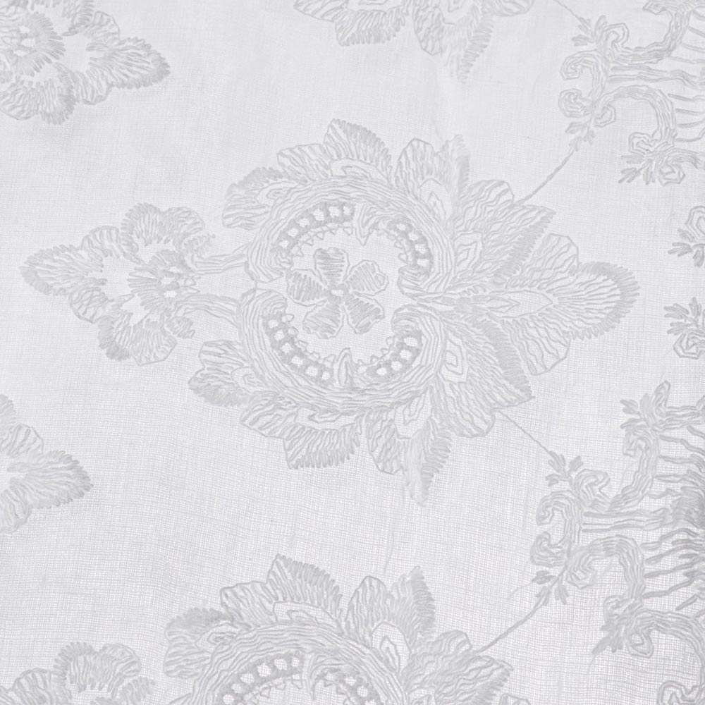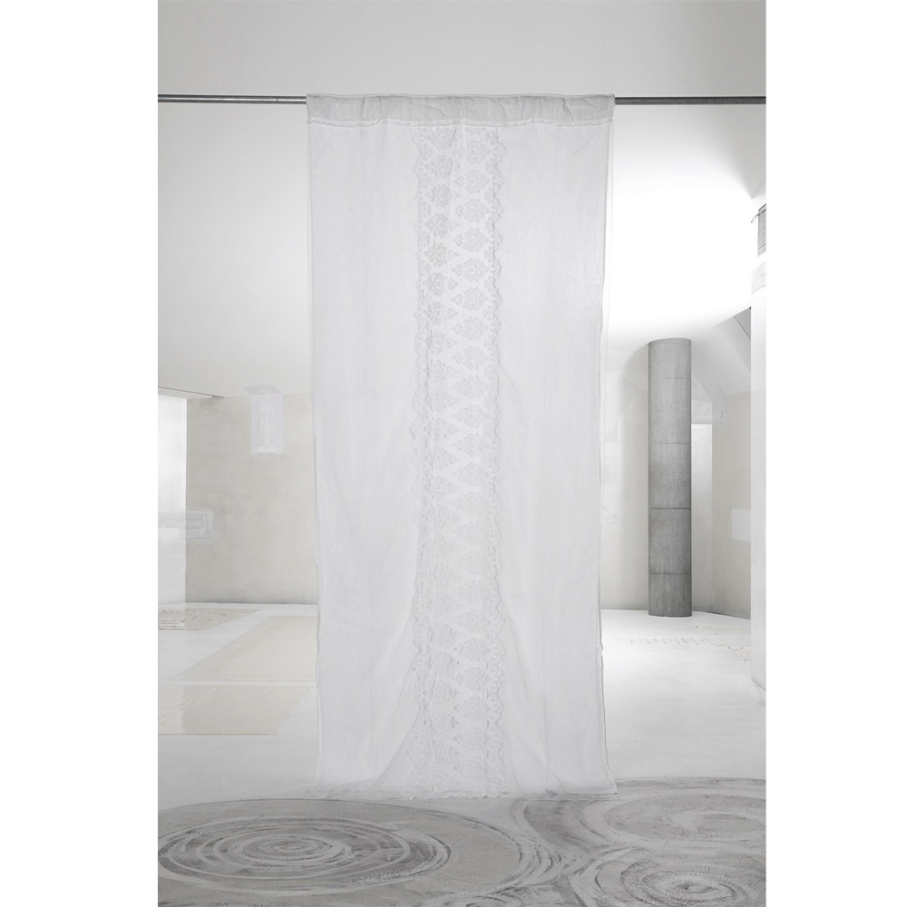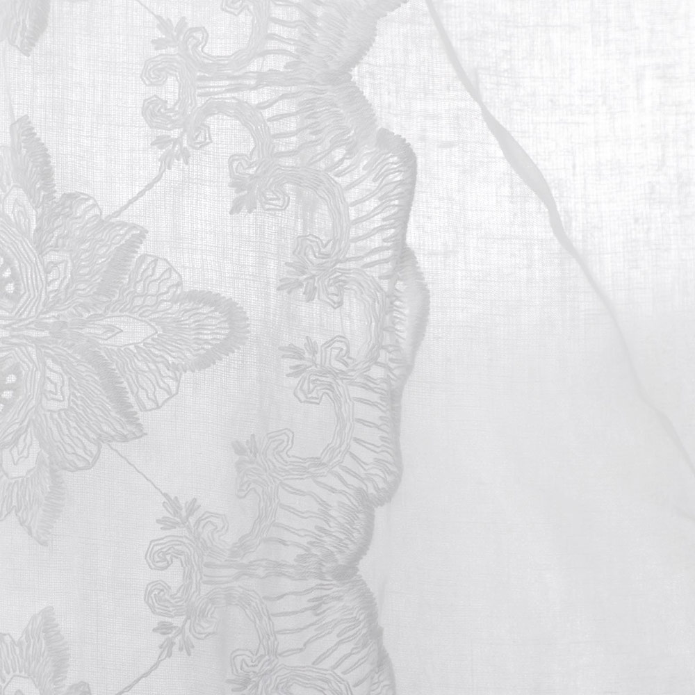 Hvid linned og organza gardin med lodret central broderi, disposition for stang, håndlavet kvalitet fremstillet i Italien.
