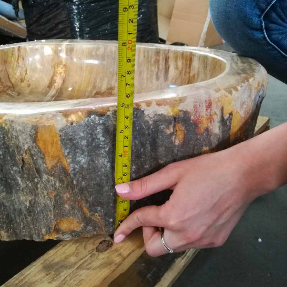 NB Hvert stykke er lavet i hånden fra fossile forstenet træ blokke fra Indonesien og er derfor unik og forskellige fra hinanden i form, korn og farvetoner.